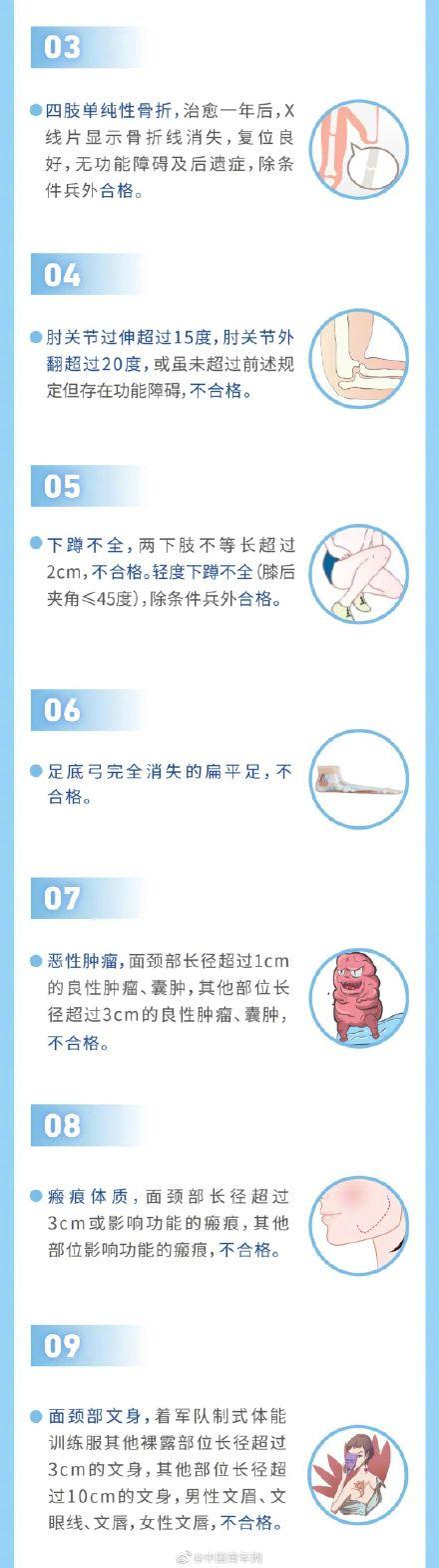 2、軍隊相關部門發(fā)布的征兵體檢標準;