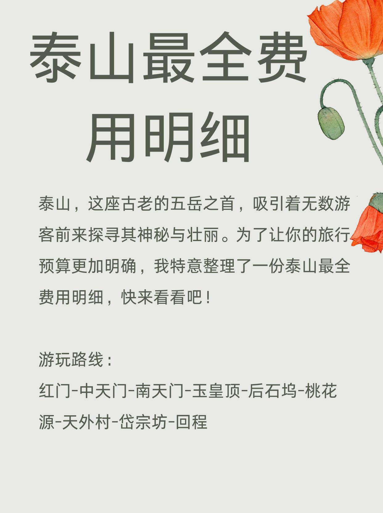 泰山旅游費用明細(xì)指南:本文提供了關(guān)于泰山旅游的各項費用明細(xì),包括門票、交通、餐飲、住宿等方面的詳細(xì)信息。游客可以通過本指南了解泰山旅游的各項費用,做好預(yù)算規(guī)劃。本文還介紹了泰山旅游的注意事項和熱門景點,為游客提供全面的旅游參考。