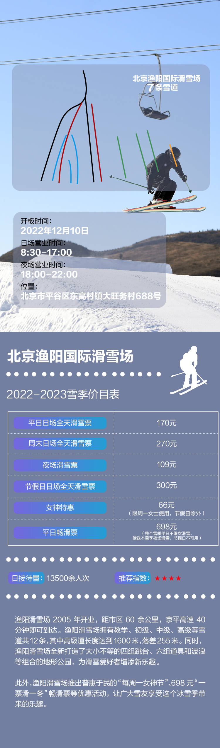 北京的滑雪場擁有優(yōu)美的環(huán)境、先進(jìn)的設(shè)施和專業(yè) 的服務(wù)團(tuán)隊(duì),為游客提供最佳的滑雪體驗(yàn),以上介紹的北京滑雪場排名前十名,是北京市內(nèi)最具特色、最受歡迎的滑雪場之一,無論您是初次嘗試冰雪運(yùn)動(dòng)還是已經(jīng)有一定的滑雪經(jīng)驗(yàn),都可以在這些滑雪場中找到適合自己的項(xiàng)目,享受冰雪運(yùn)動(dòng)的樂趣。