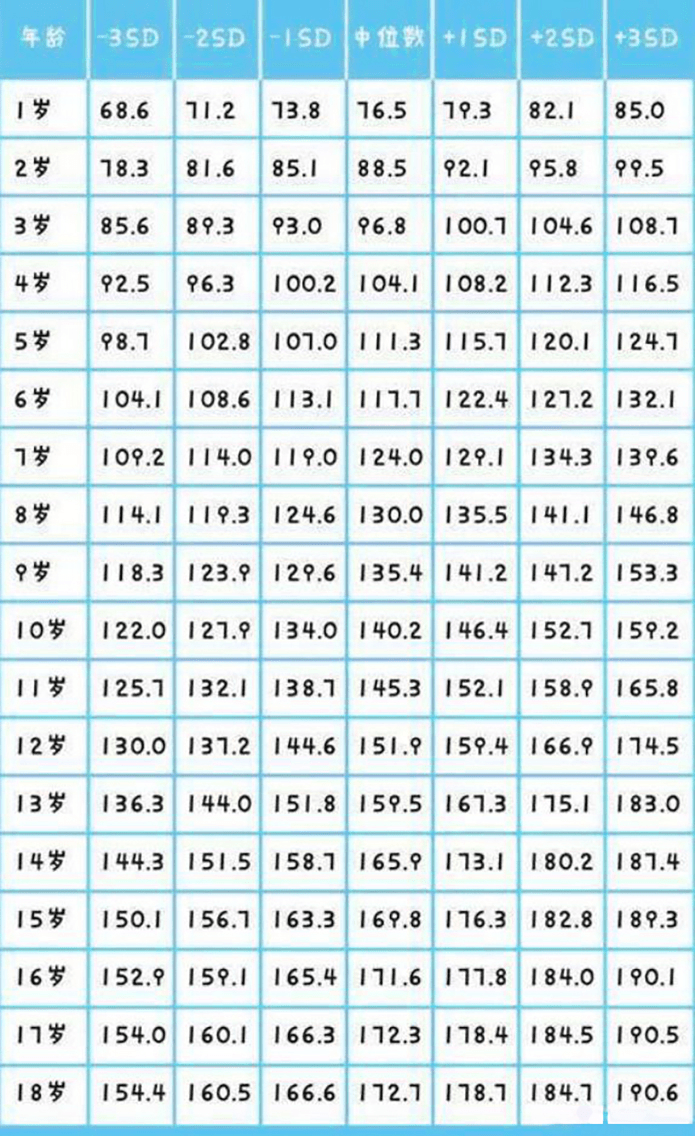 標準身高表是根據(jù)大規(guī)模人群的身高數(shù)據(jù),按照年齡、性別等因素進行統(tǒng)計、分析得出的平均身高值,這些數(shù)據(jù)可以反映出一個地區(qū)、一個時代人們的身高水平,也可以作為判斷孩子身高發(fā)育是否正常的重要參考。