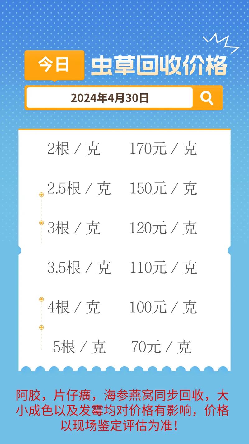 3、市場(chǎng)需求與供應(yīng):與其他商品一樣,冬蟲夏草的價(jià)格也受到供需關(guān)系的影響,當(dāng)市場(chǎng)需求大于供應(yīng)時(shí),價(jià)格往往會(huì)上漲。