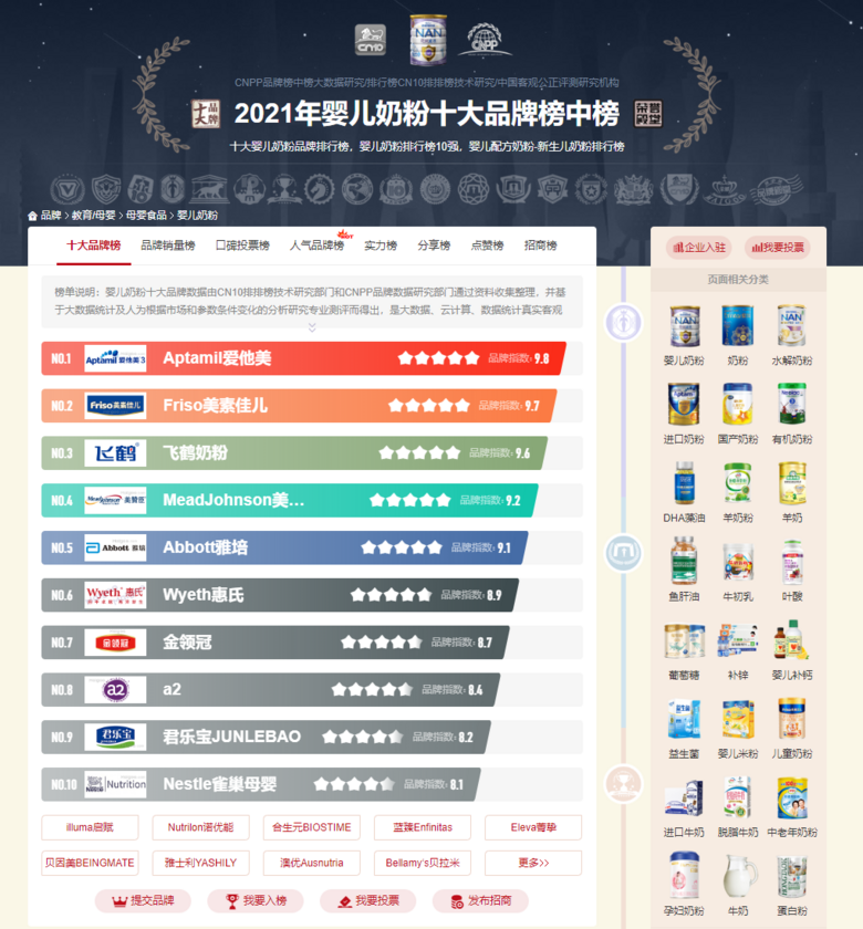 市場解析:主流嬰兒奶粉品牌