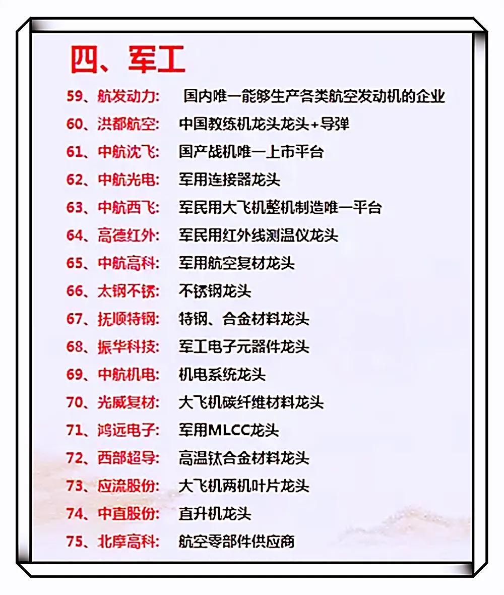 隨著國家安全需求的不斷增長和軍工技術的飛速發(fā)展,軍工股成為投資者關注的焦點,在眾多軍工公司中,龍頭股以其強大的技術實力、市場份額和良好的業(yè)績預期脫穎而出,本文將深入探討軍工股龍頭股是哪幾只,并分析其行業(yè)地位、競爭優(yōu)勢及未來發(fā)展趨勢。